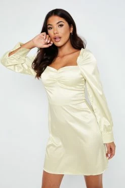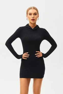 Solado Sweetheart Ribbed Knit Bodycon Long Sleeve Sweater Dress