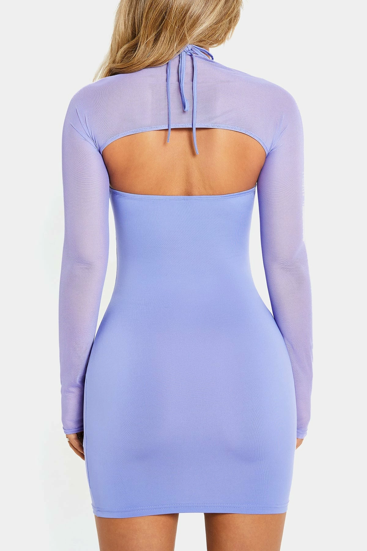 SOLADO 2pcs Drawstring Front Mesh Long Sleeve Bodycon Dress