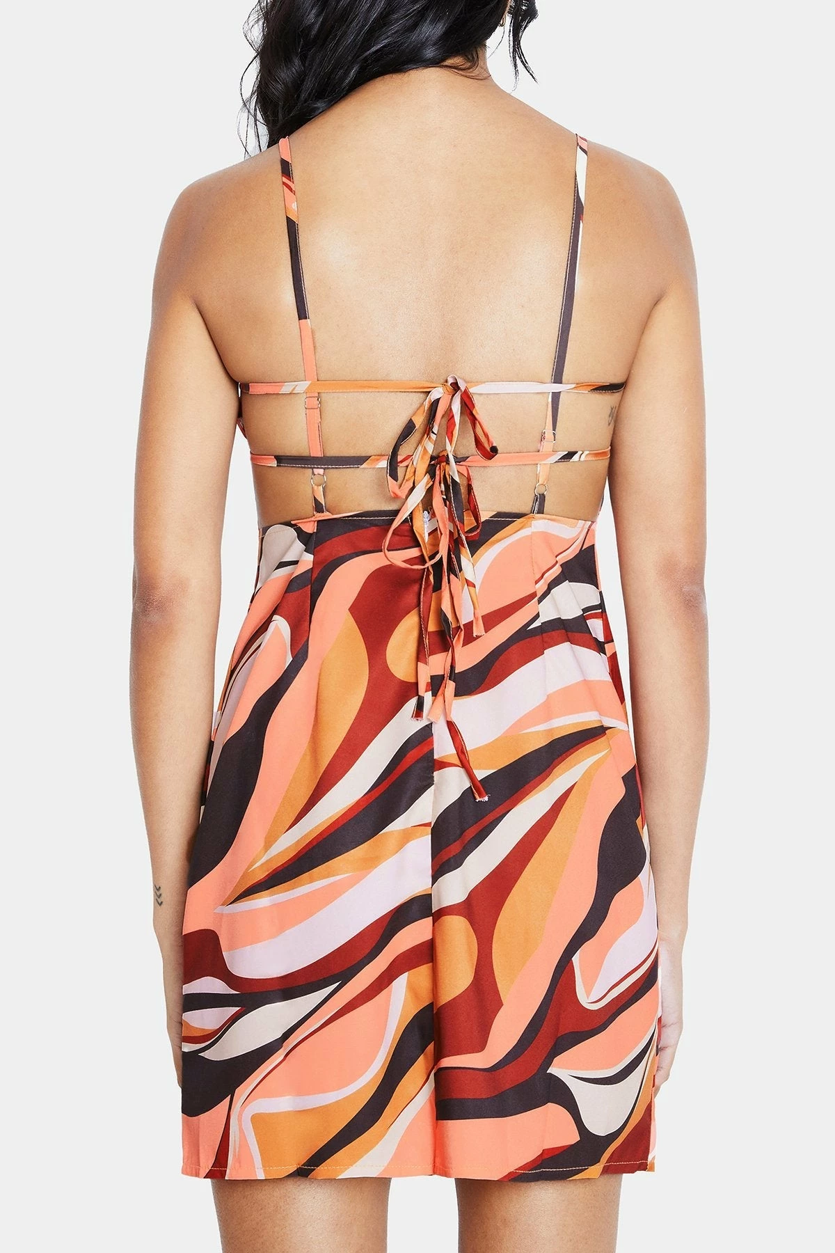 Solado Abstract Print Colorblock Tie Back Mini Dress