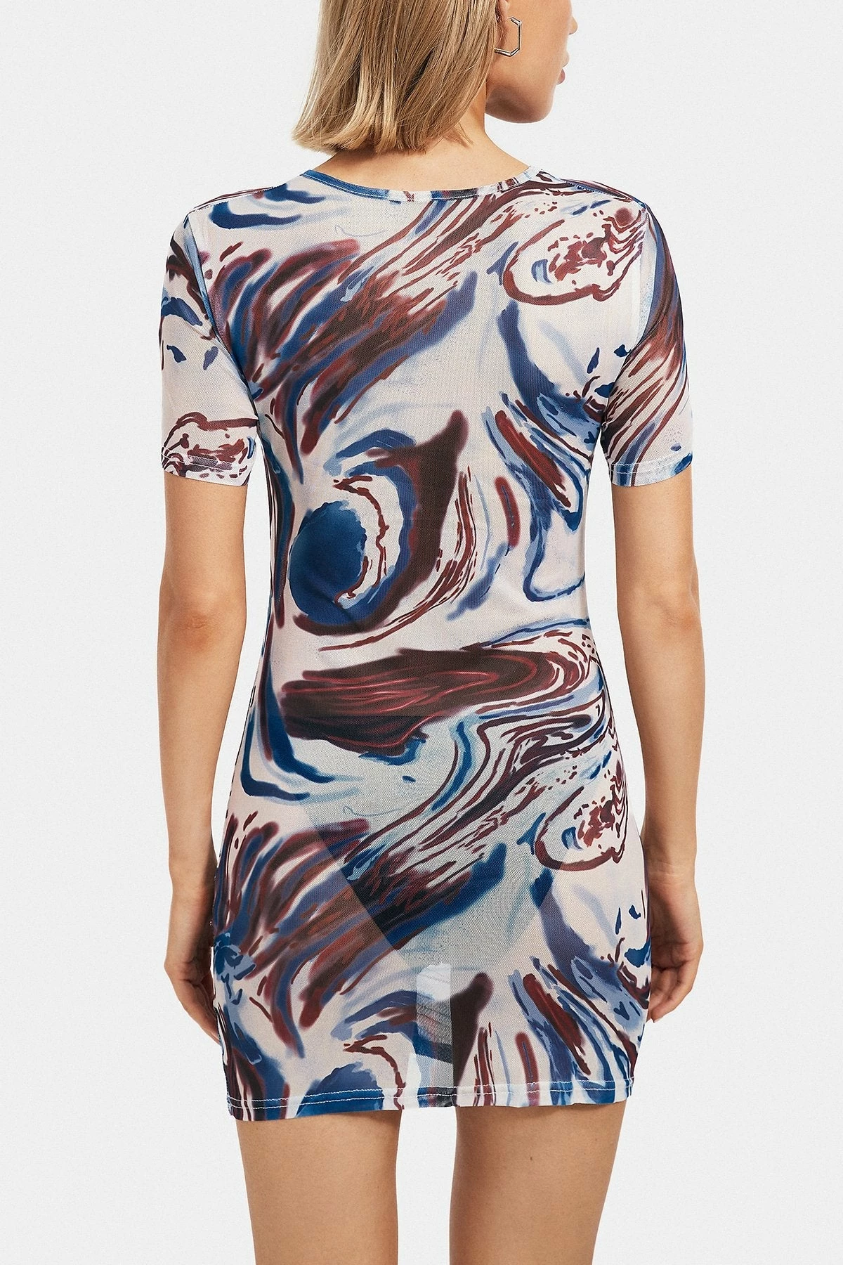 Solado Abstract Print Ruched Short Sleeve Mini Dress