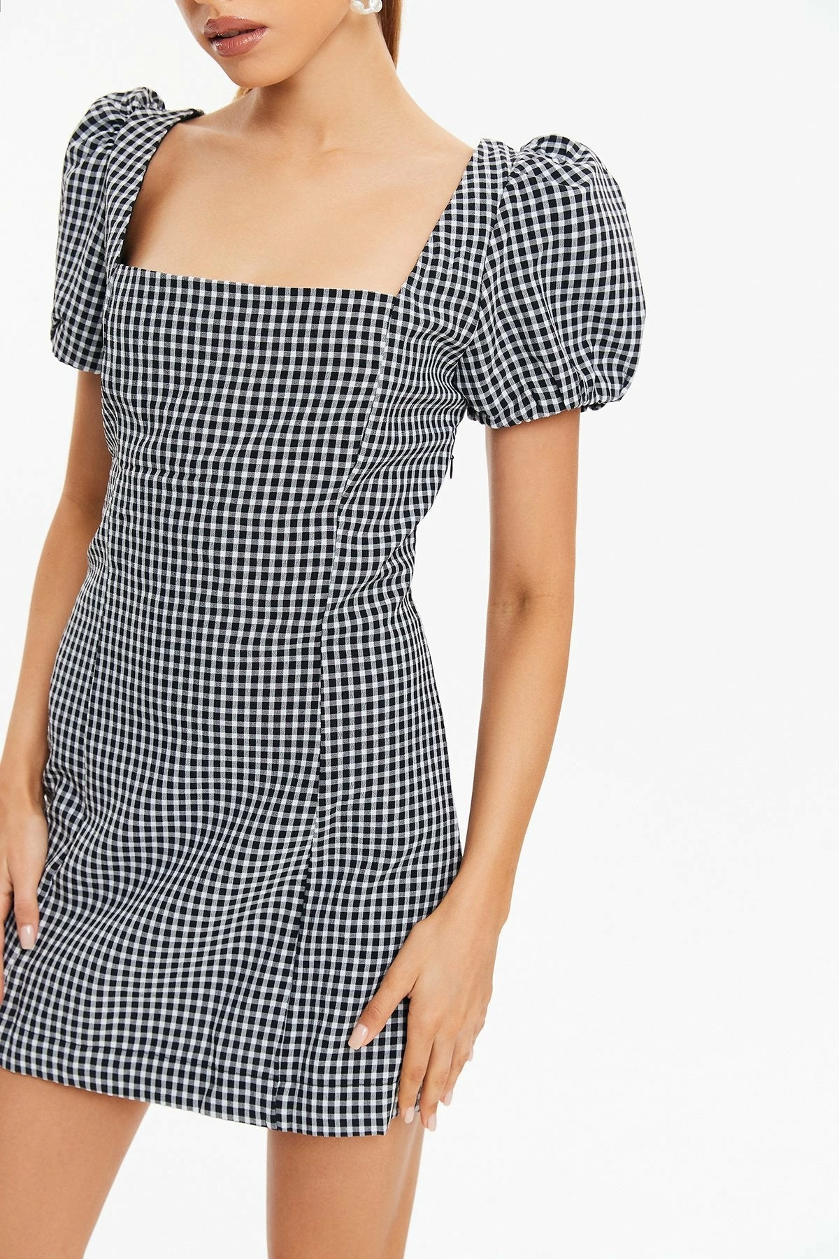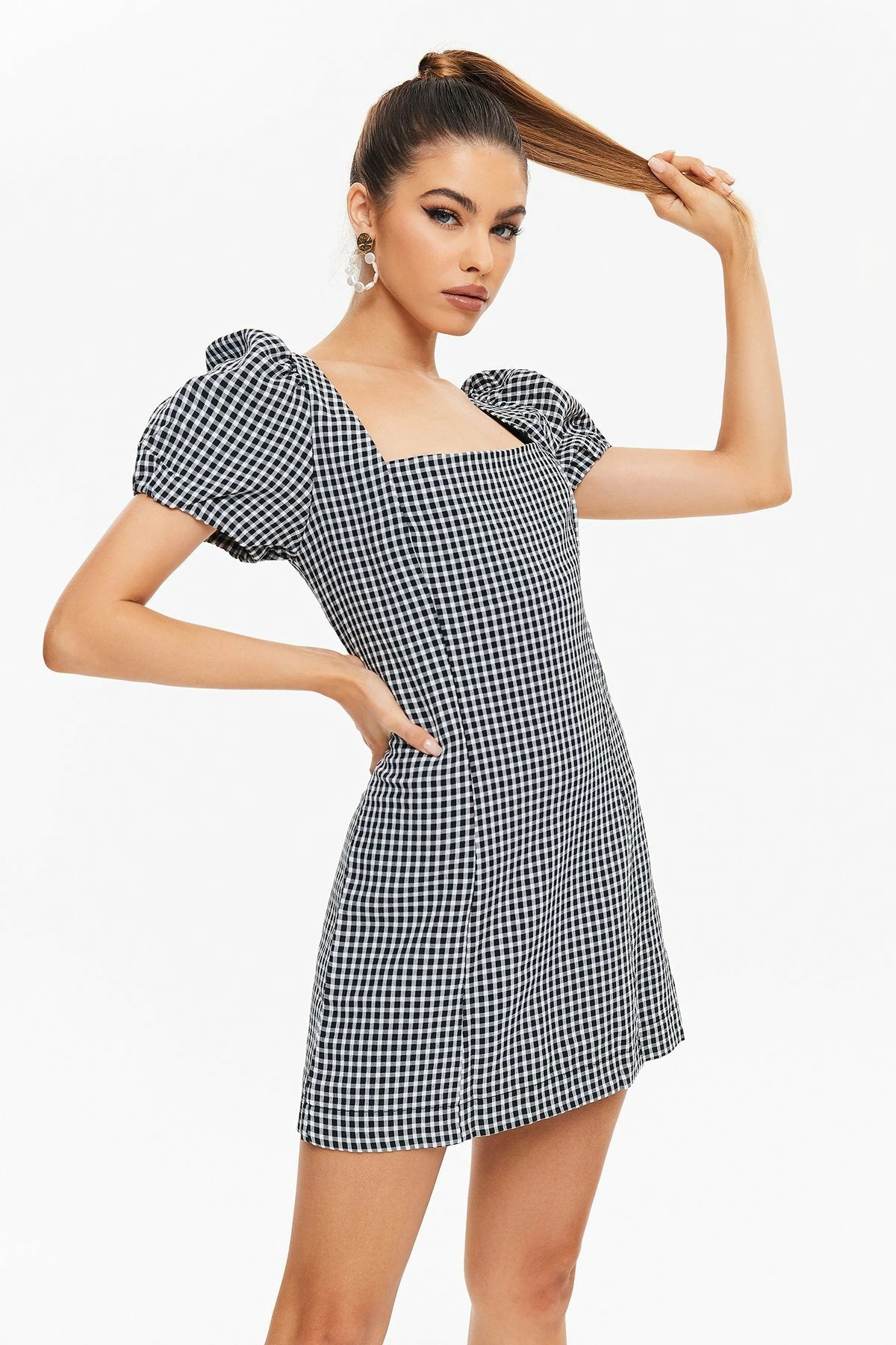 Be the first to review “Solado Check Print Lace Up Backless Puff Sleeve Mini Dress” Cancel reply