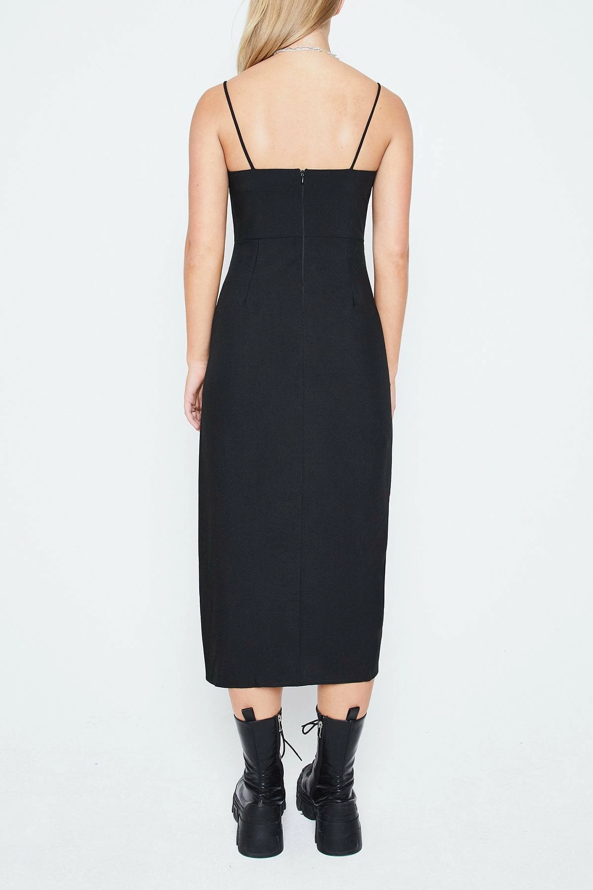 Solado Cinched Waist Split Hem Solid Midi Dress
