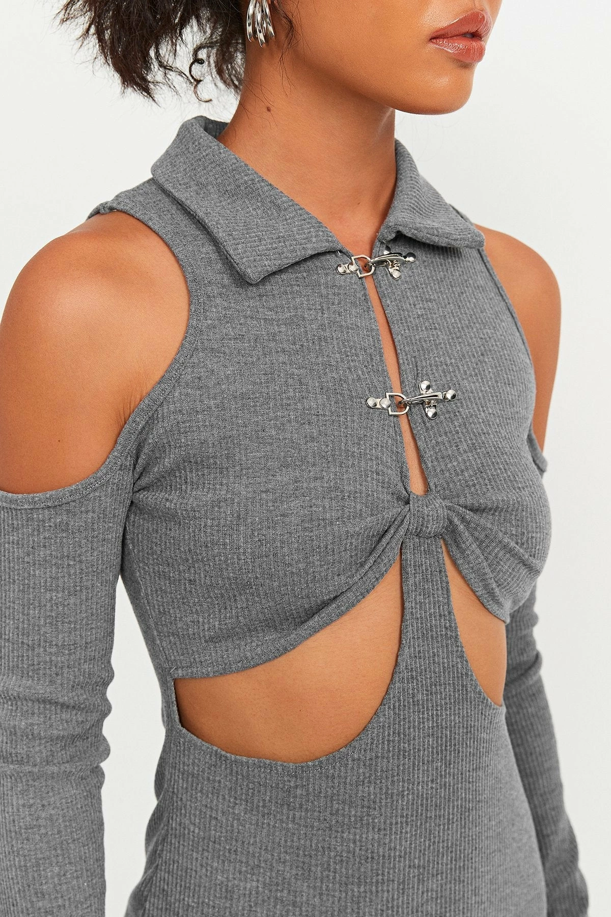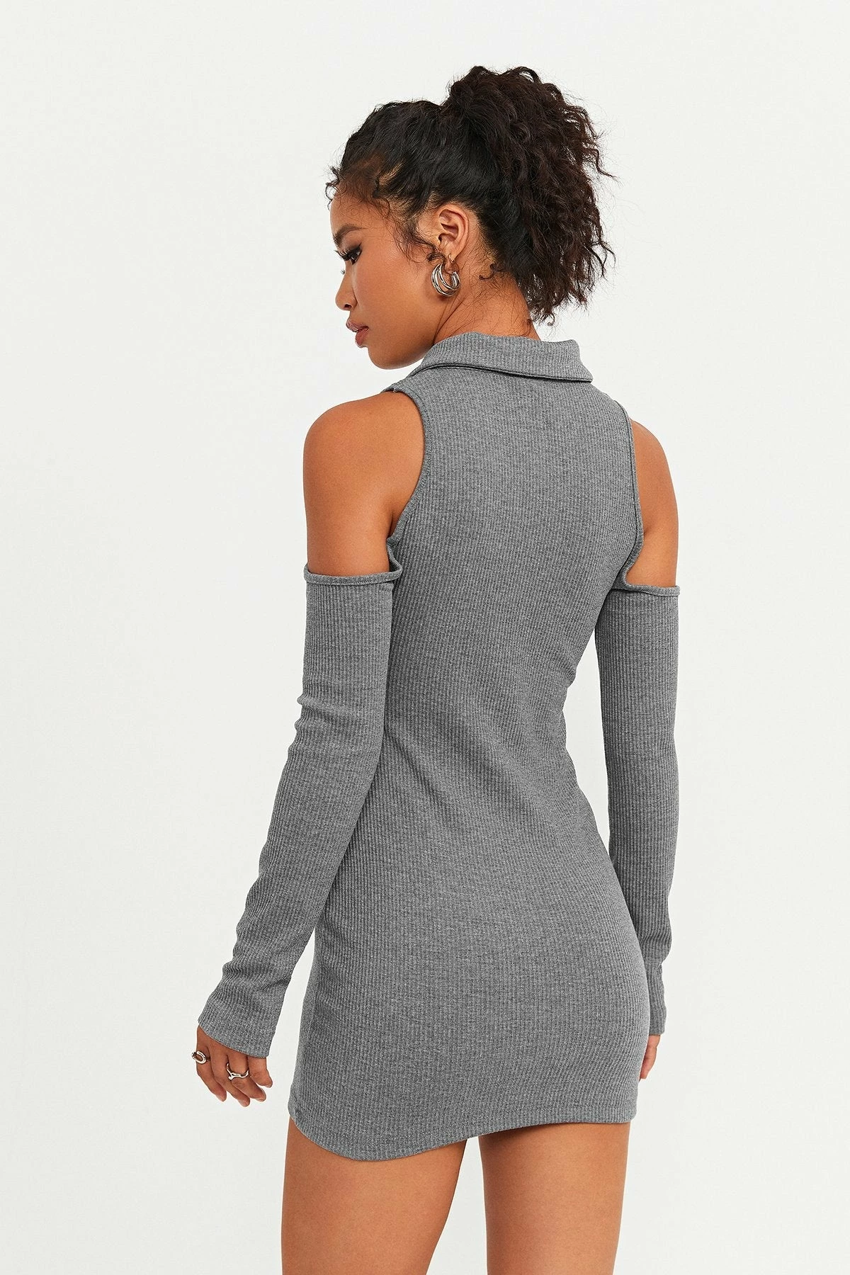Solado Cold Shoulder Cut Out Knitted Long Sleeve Mini Dress