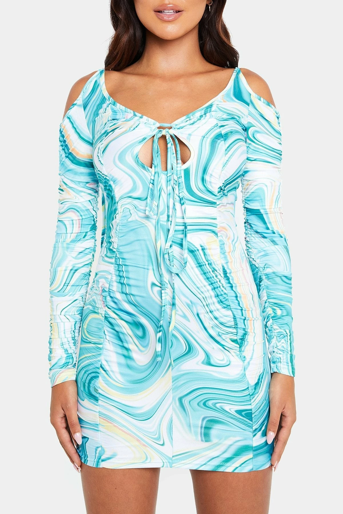 Solado Cold Shoulder Cut Out Swirl Print Mini Dress