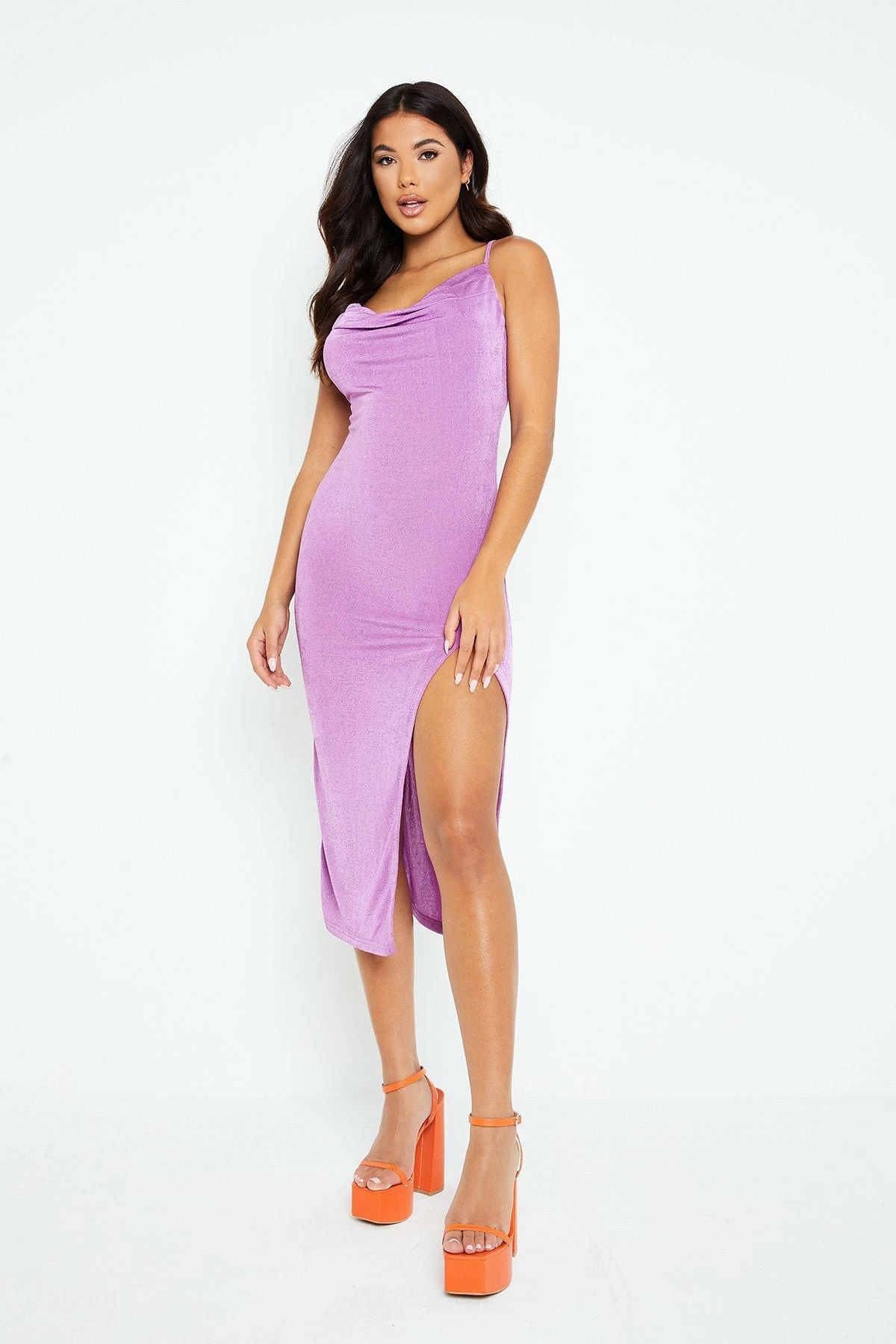 Solado Cowl Neck Split Hem Backless Solid Midi Dress