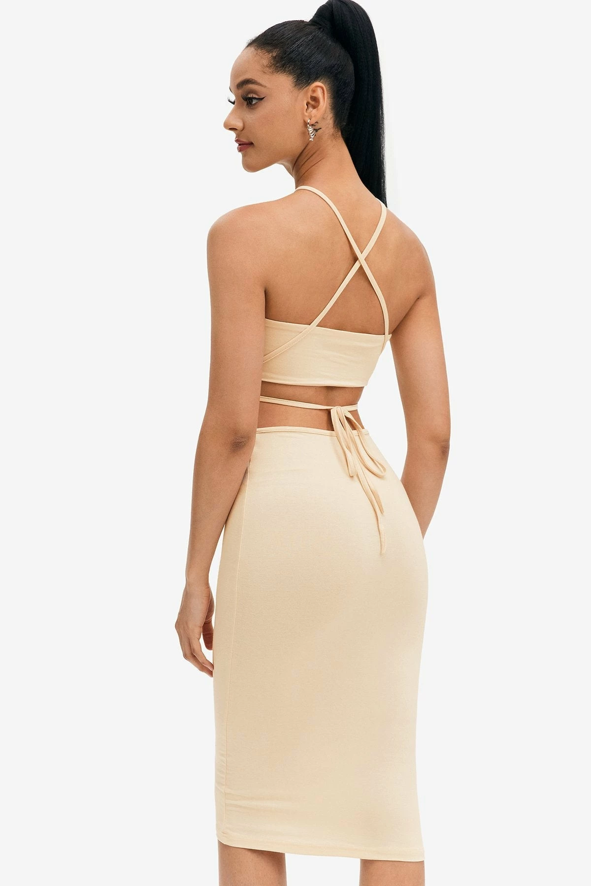 Solado Cross Wrap Tie Back Solid Bodycon Maxi Dress