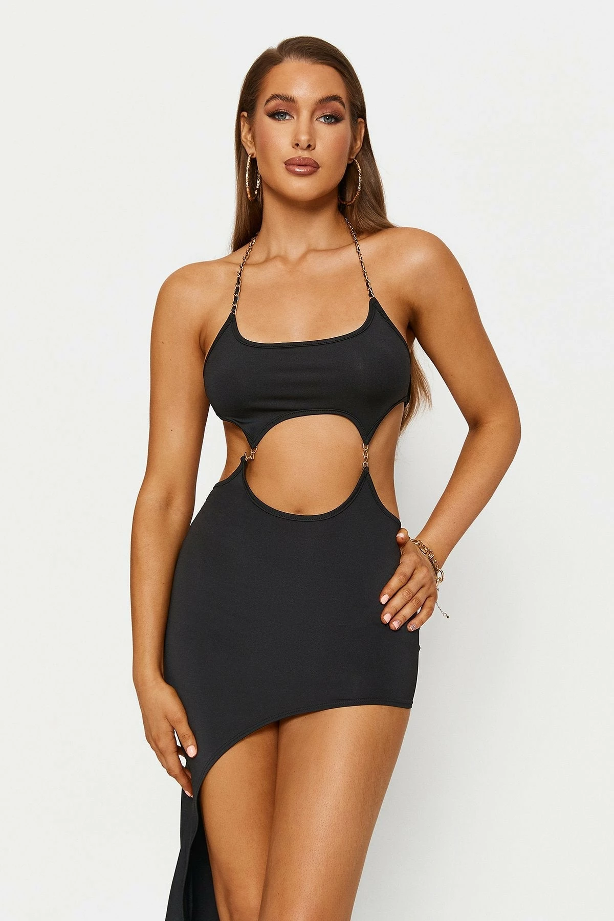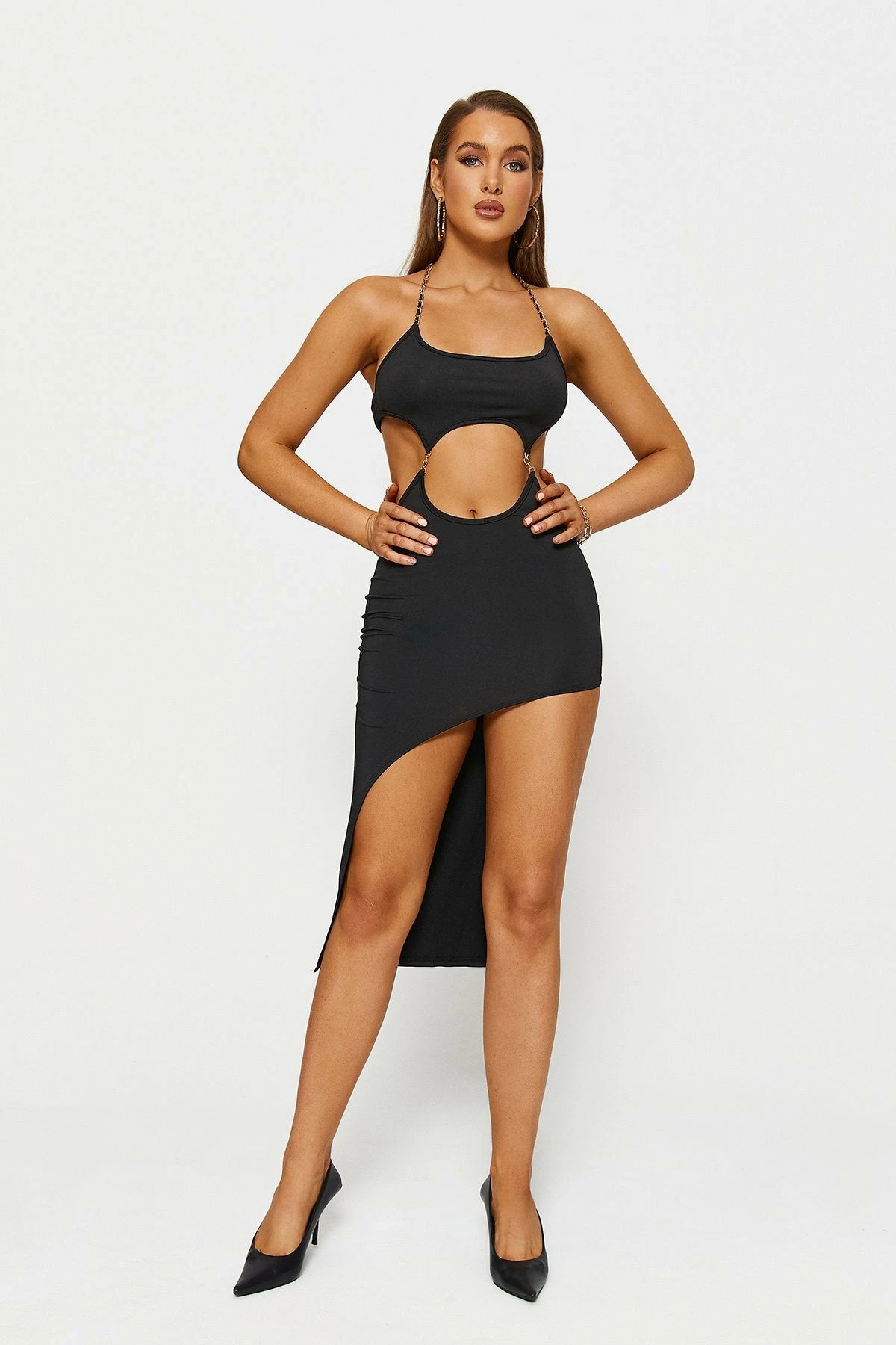 Solado Cut Out Asymmetrical Hem Backless Midi Dress