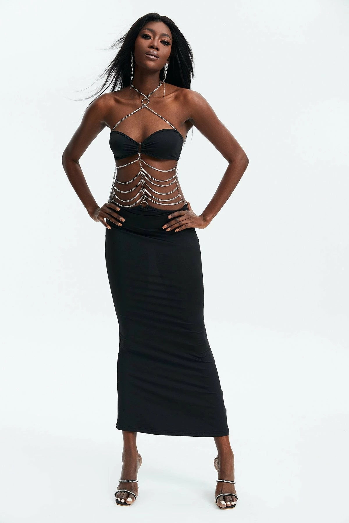 Solado Cut Out Backless Chain Detail Maxi Dress