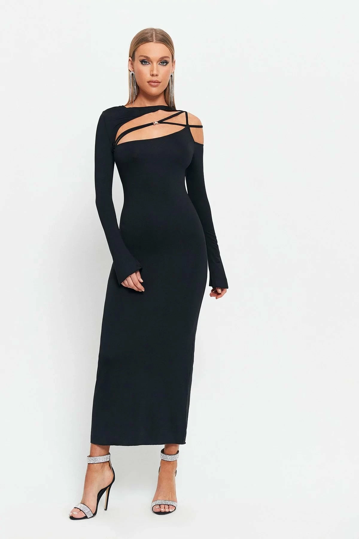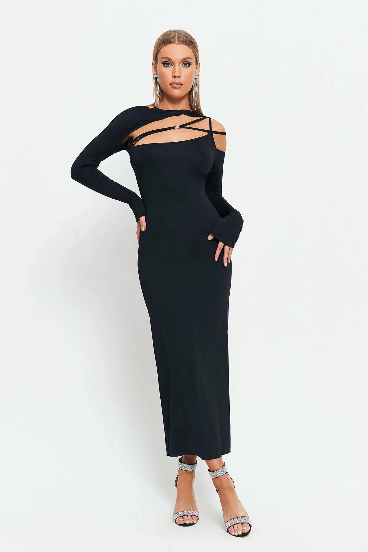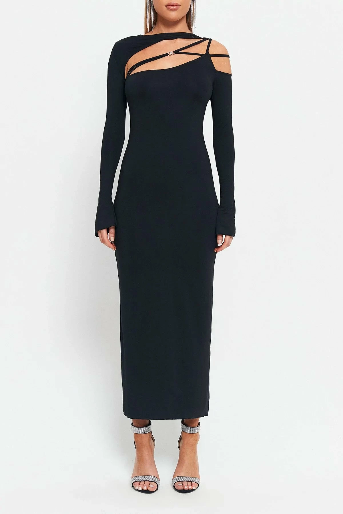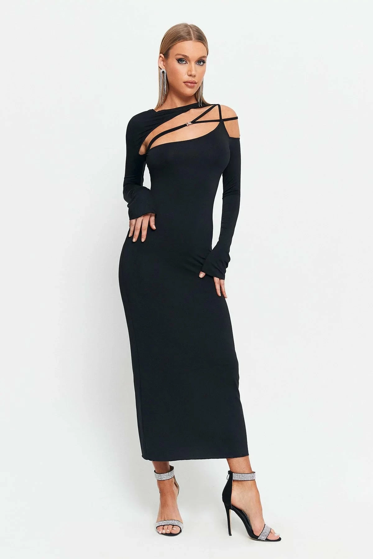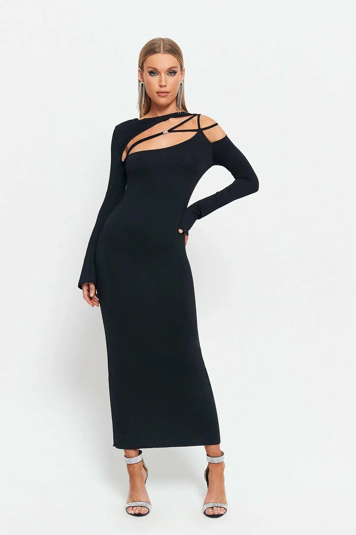 SOLADO Cut Out Cold Shoulder Bodycon Maxi Dress