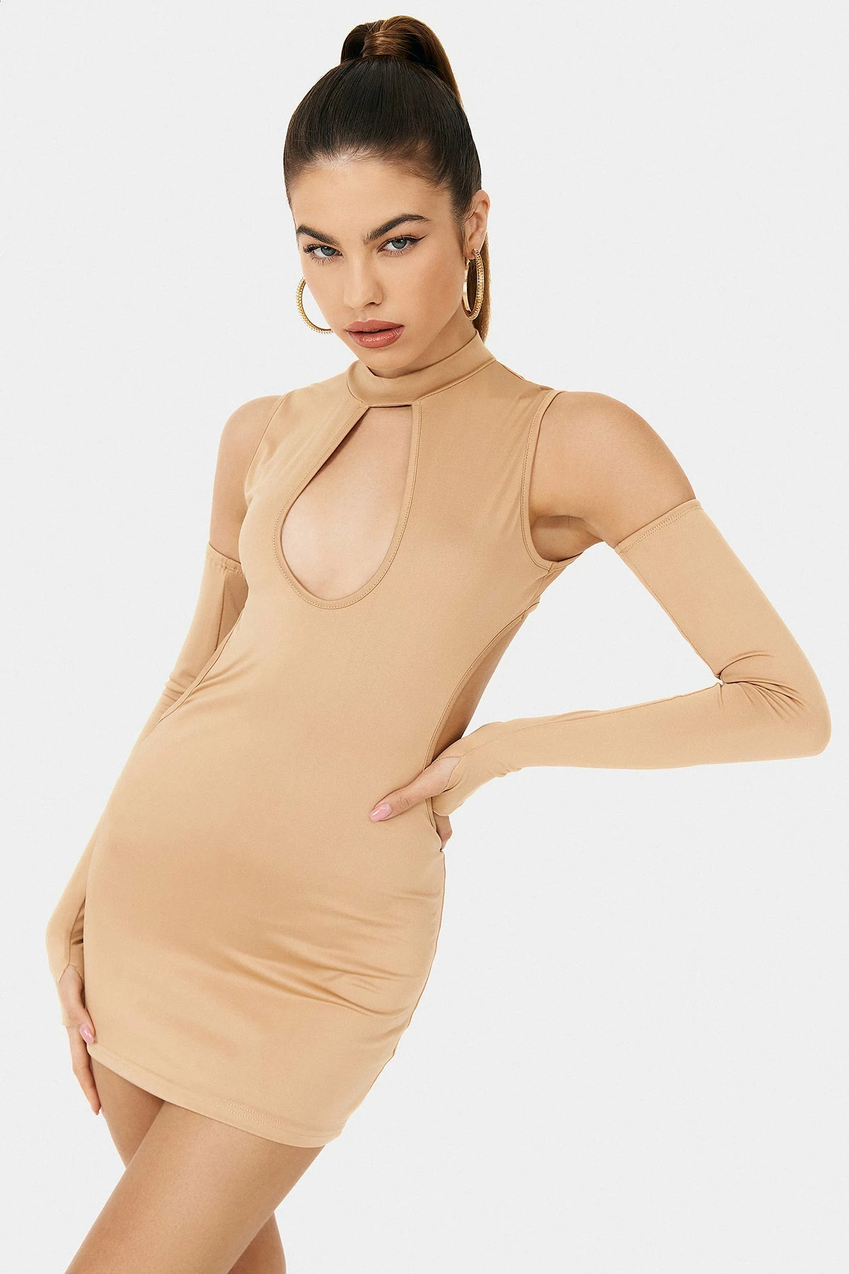 SOLADO Cut Out Cold Shoulder Mini Dress With Oversleeve