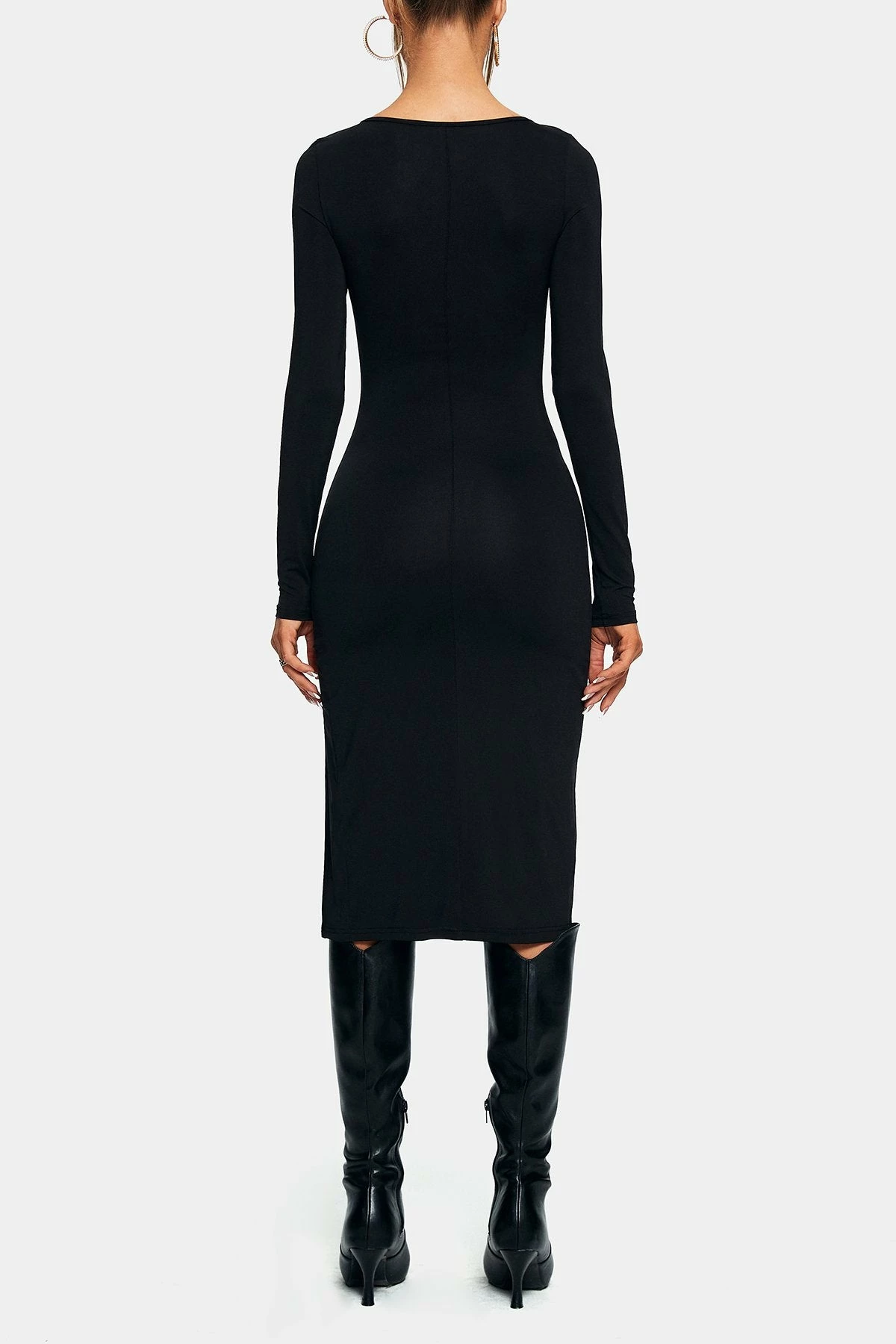 SOLADO Cut Out Split Hem Long Sleeve Midi Dress