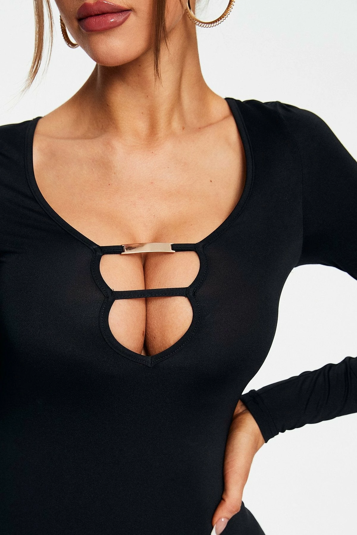 Style:SexyColor:BlackSeason:Spring/Summer/AutumnNeckline:U NeckSleeve Length:Long SleeveHem Shaped:SlimComposition:90% Polyester, 10% Spandex