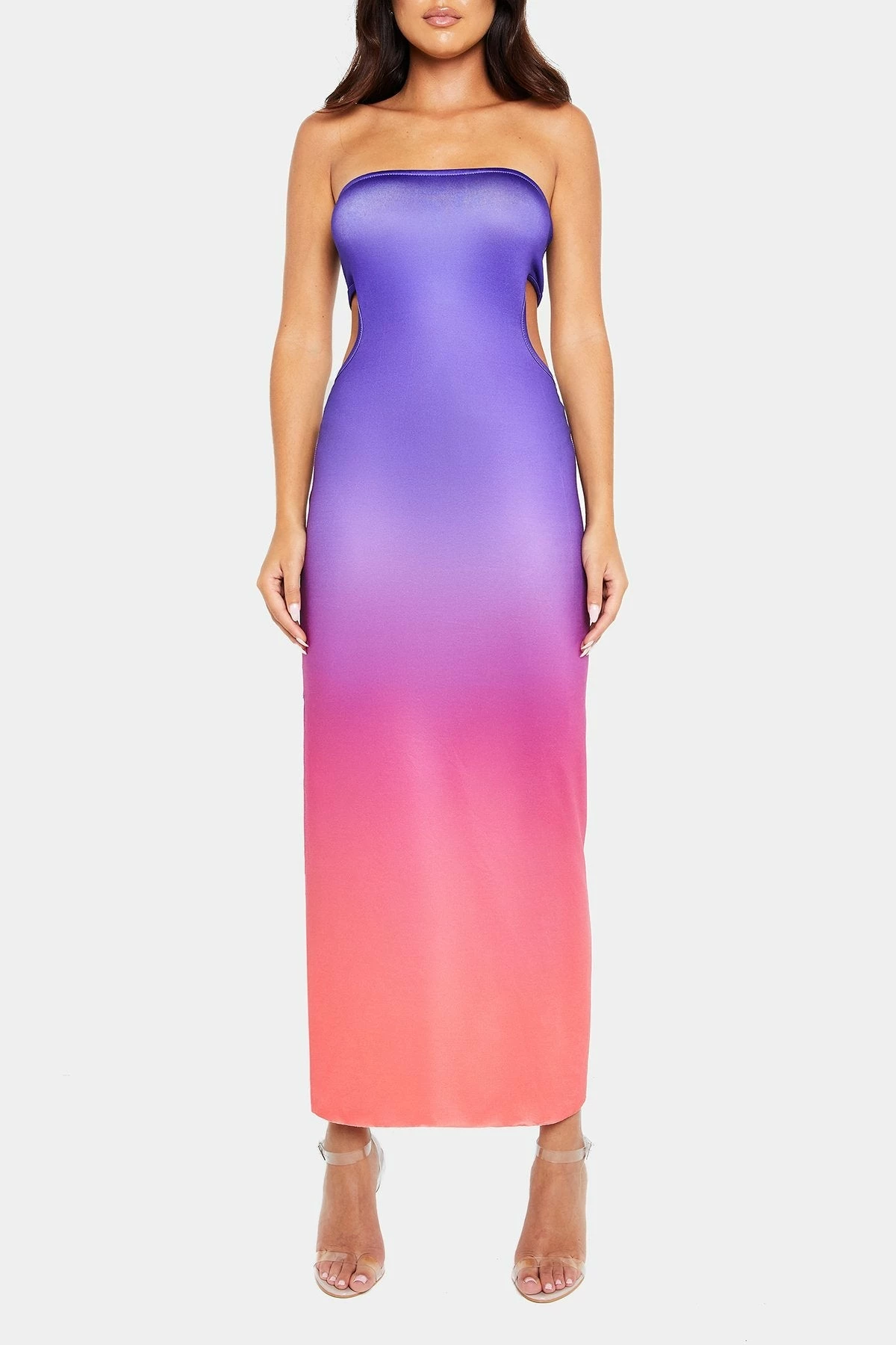 Solado Gradient Cut Out Split Hem Tube Maxi Dress
