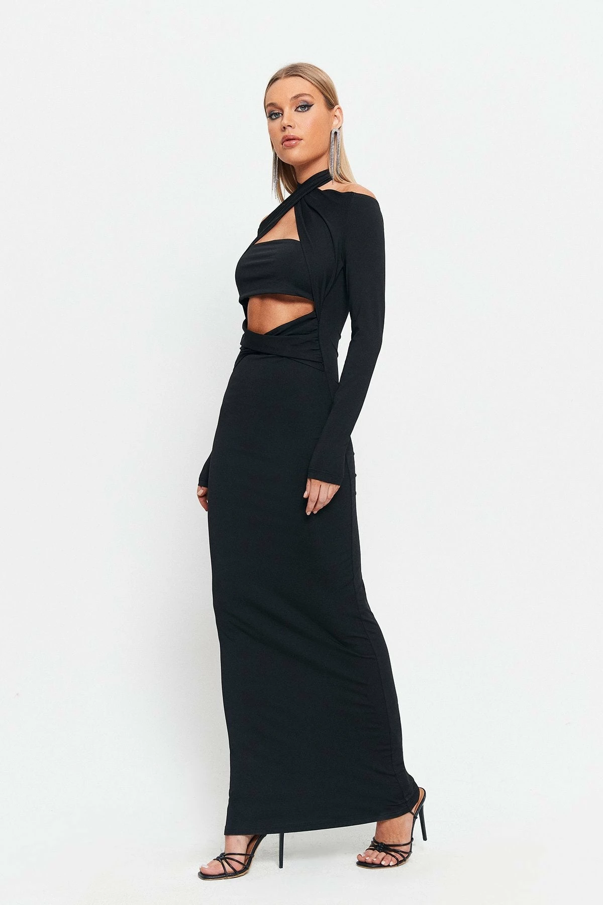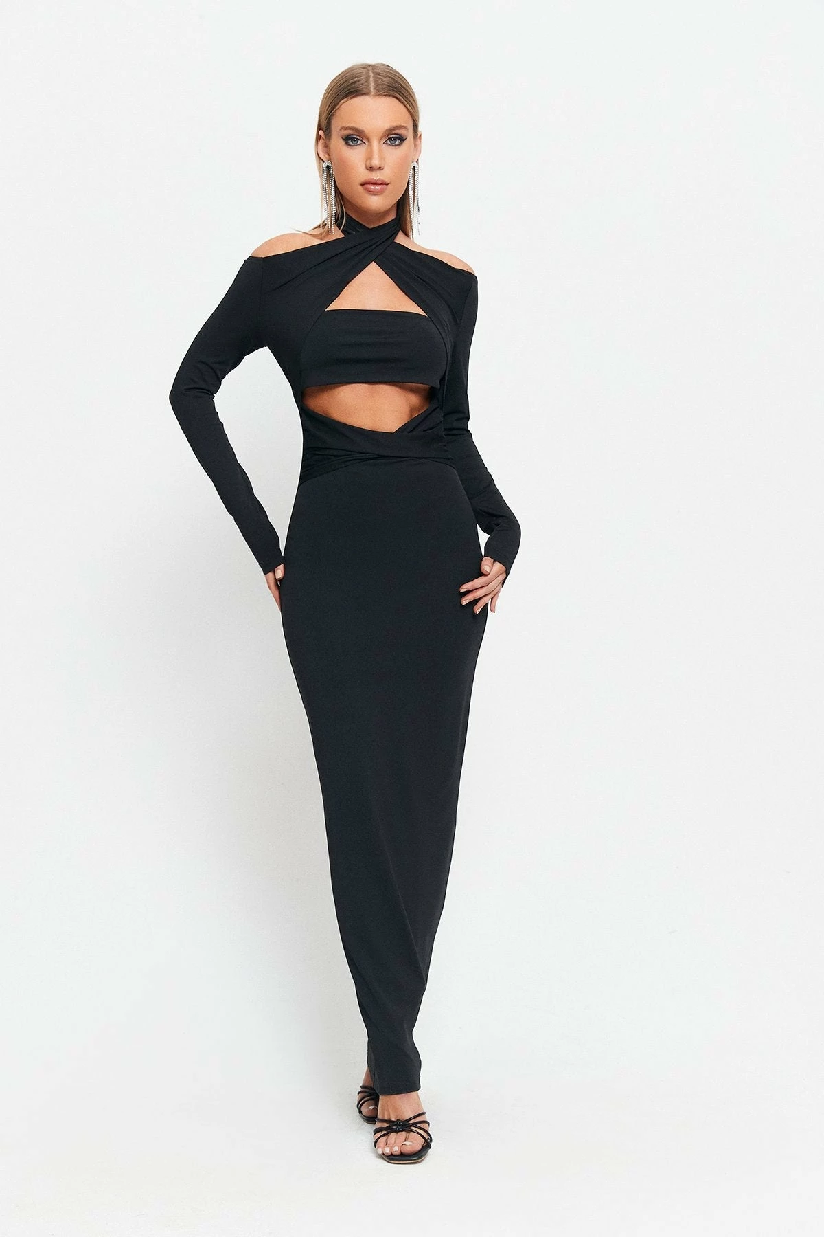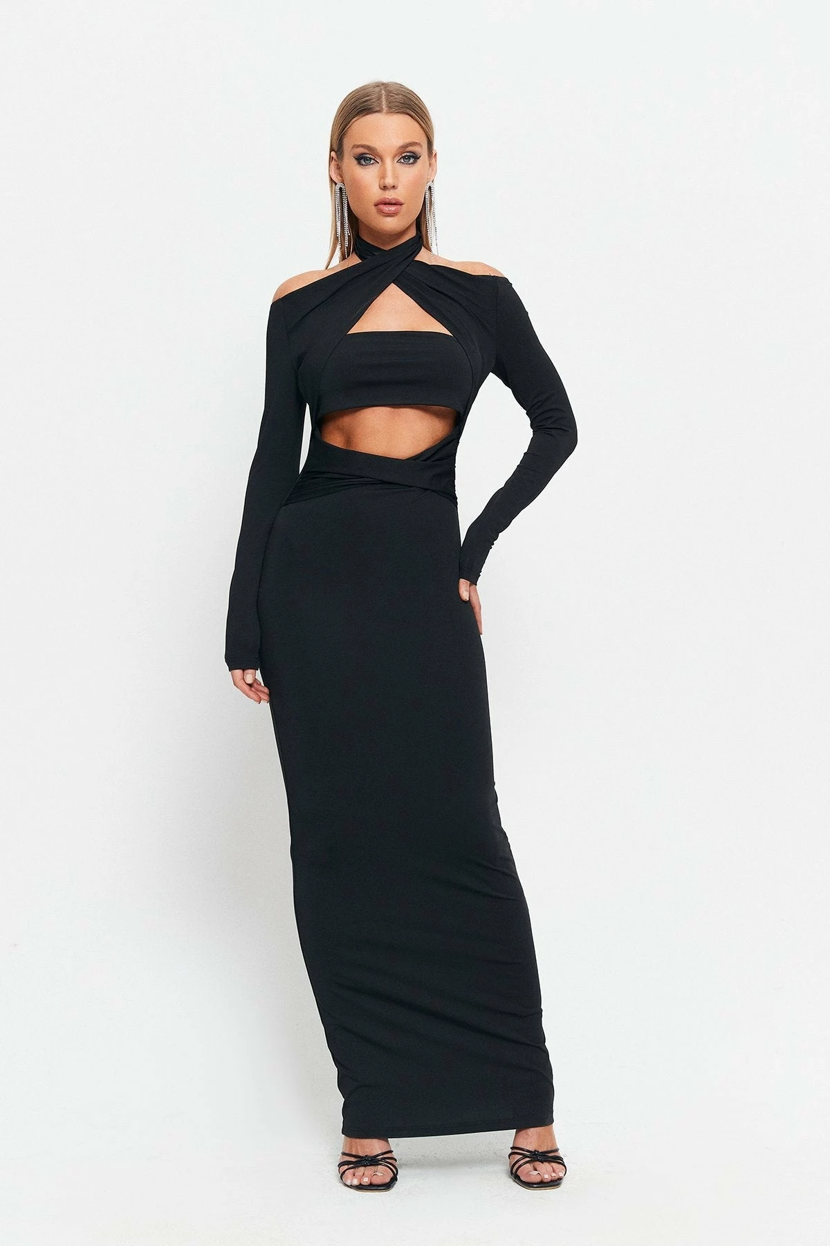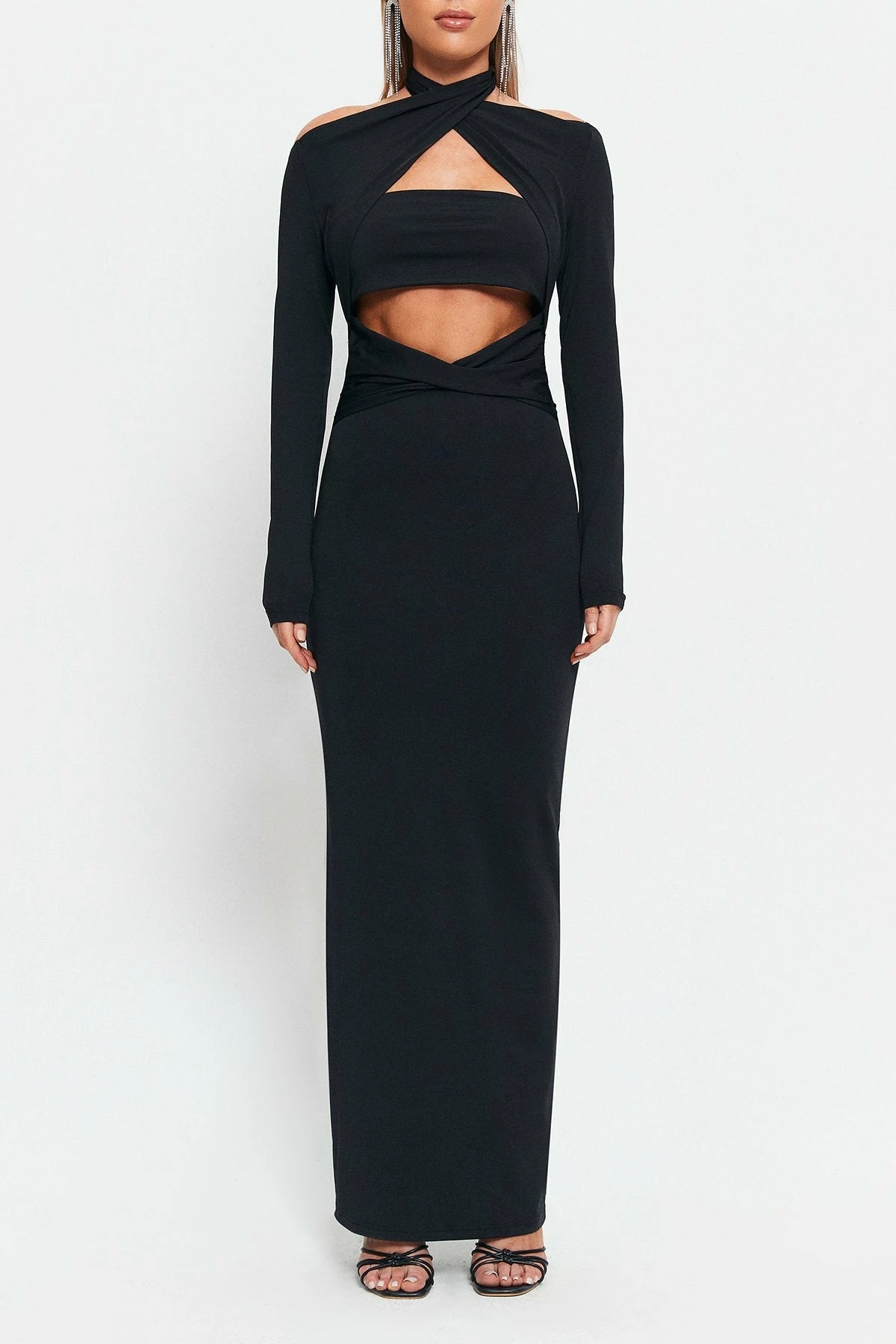 SOLADO Halter Neck Cut Out Long Sleeve Maxi Dress