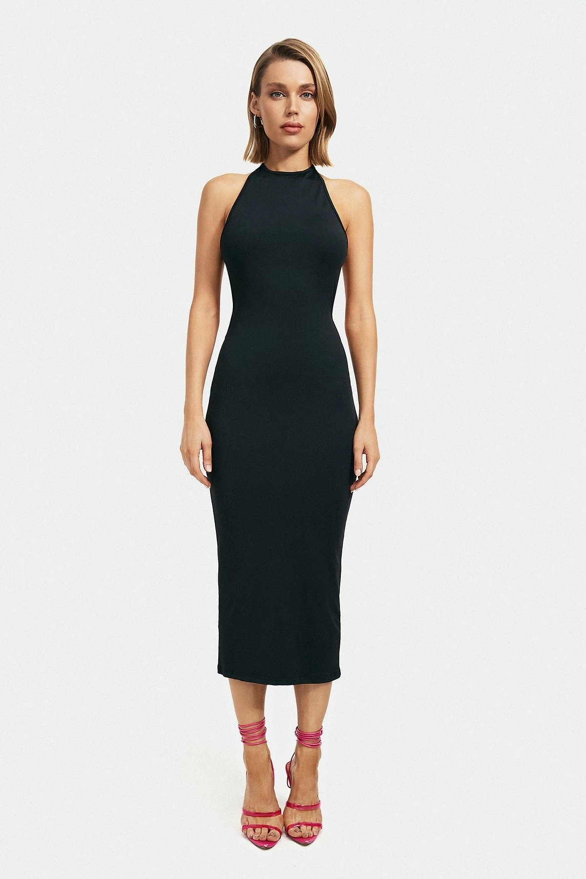 Solado Halter Neck Open Back Bodycon Maxi Dress