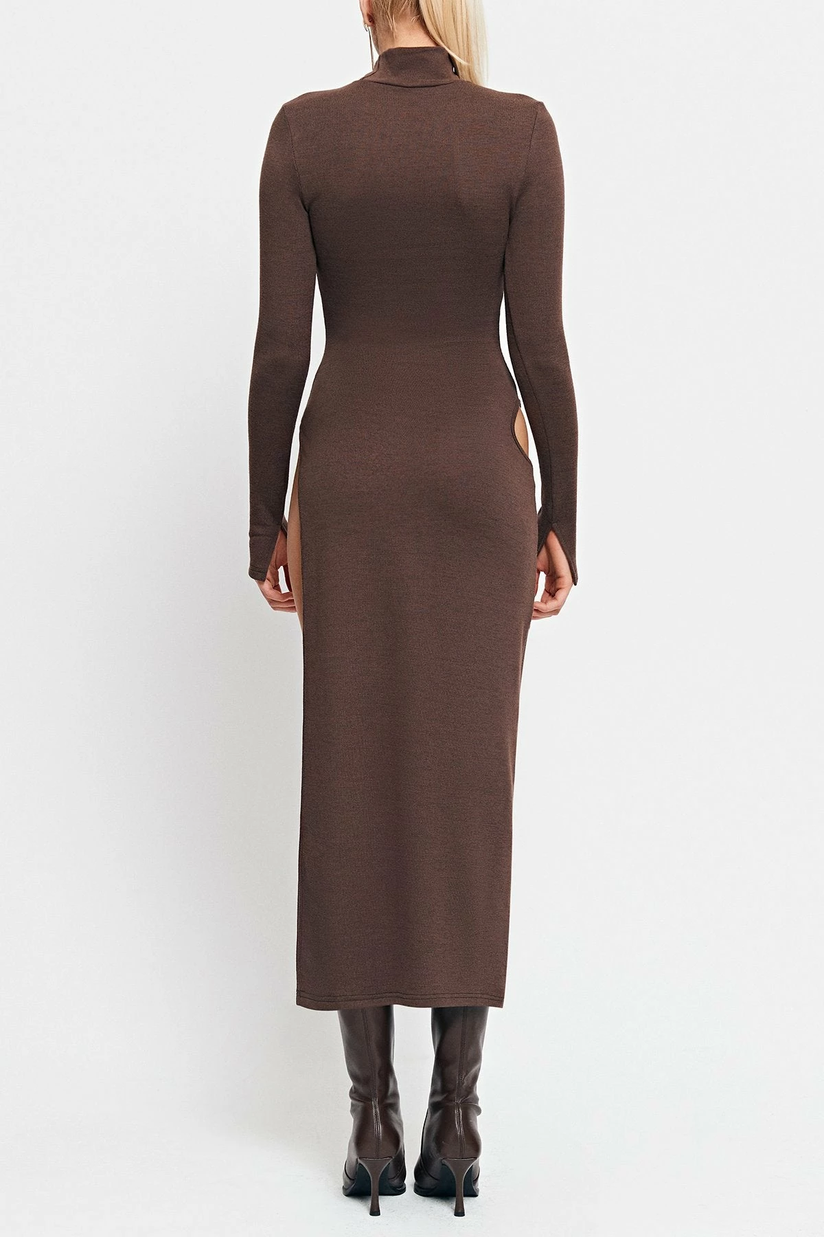 SOLADO High Neck Cut Out Split Hem Long Sleeve Midi Dress