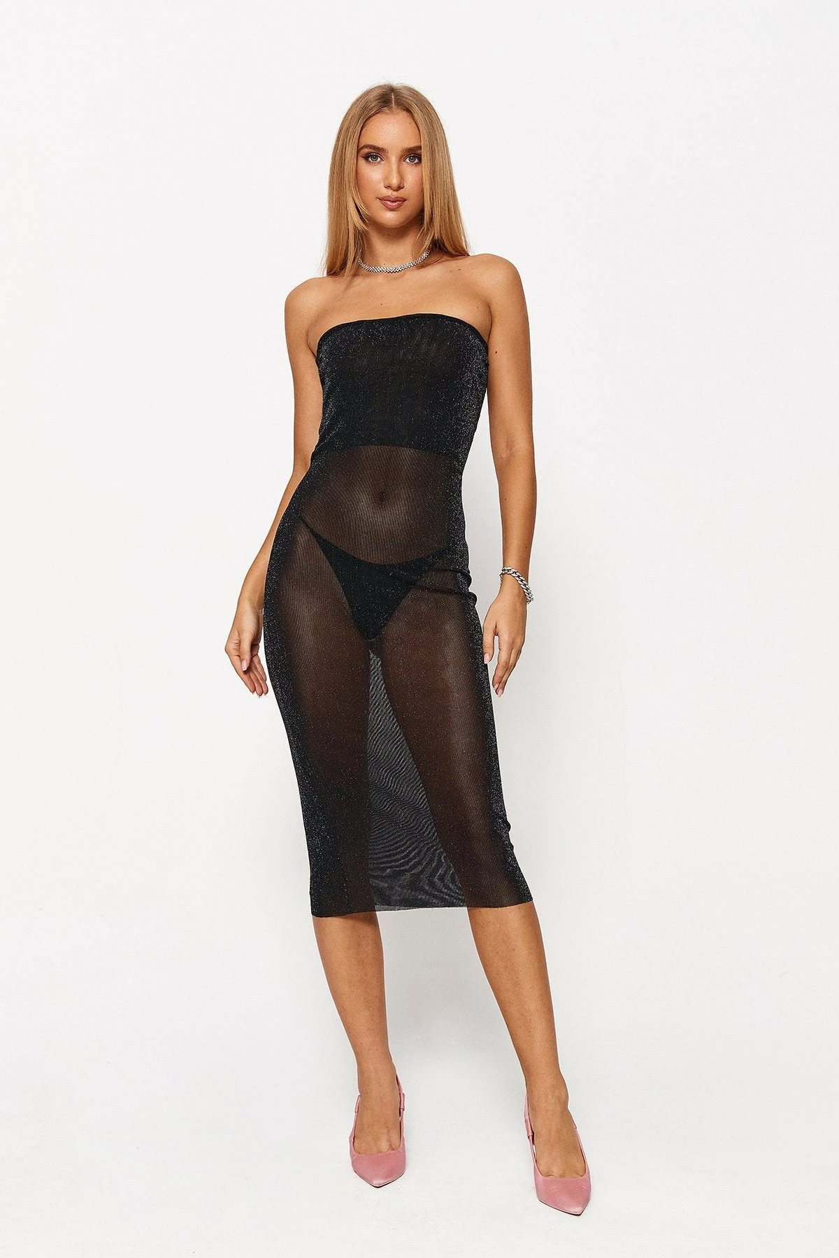 Solado Lurex Mesh Splicing Tube Midi Dress Without Panty