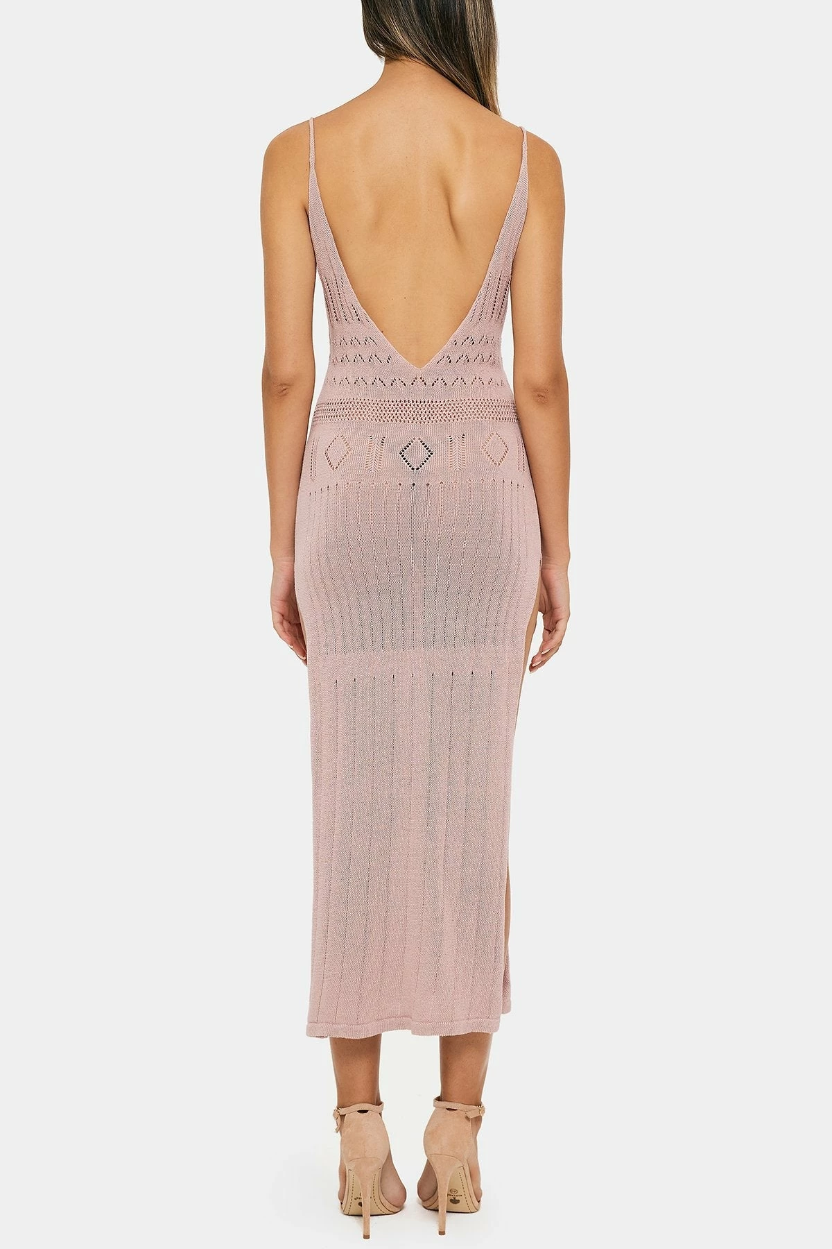Solado Plunging Neck High Split Hem Backless Knitted Maxi Dress
