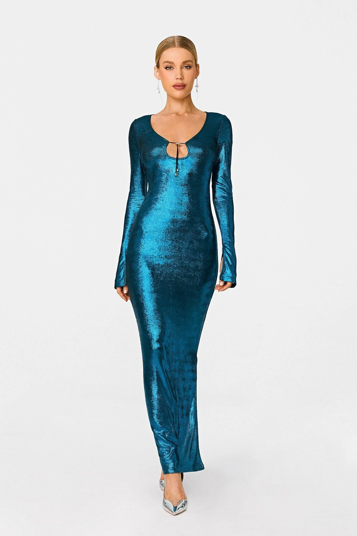 Be the first to review “SOLADO Plunging Neck Tie Front Split Hem Sheen Maxi Dress” Cancel reply