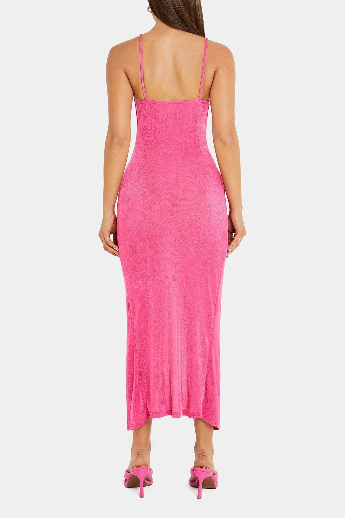 Solado Plunging Neck Twist Front Split Hem Midi Dress
