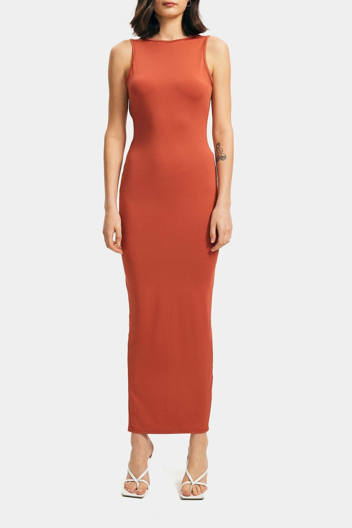 Solado Round Neck Split Hem Open Back Sleeveless Maxi Dress