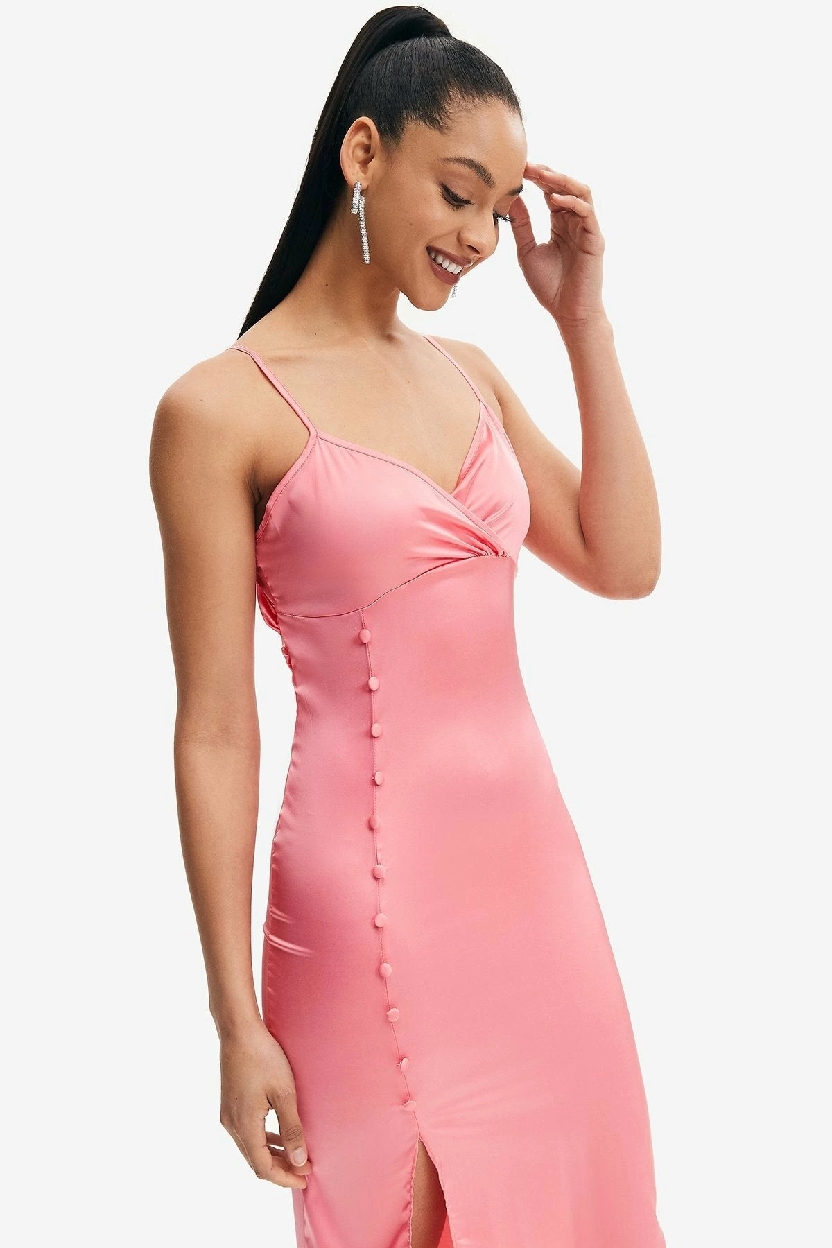 Be the first to review “Solado Satin Button Decor Split Hem Maxi Dress” Cancel reply