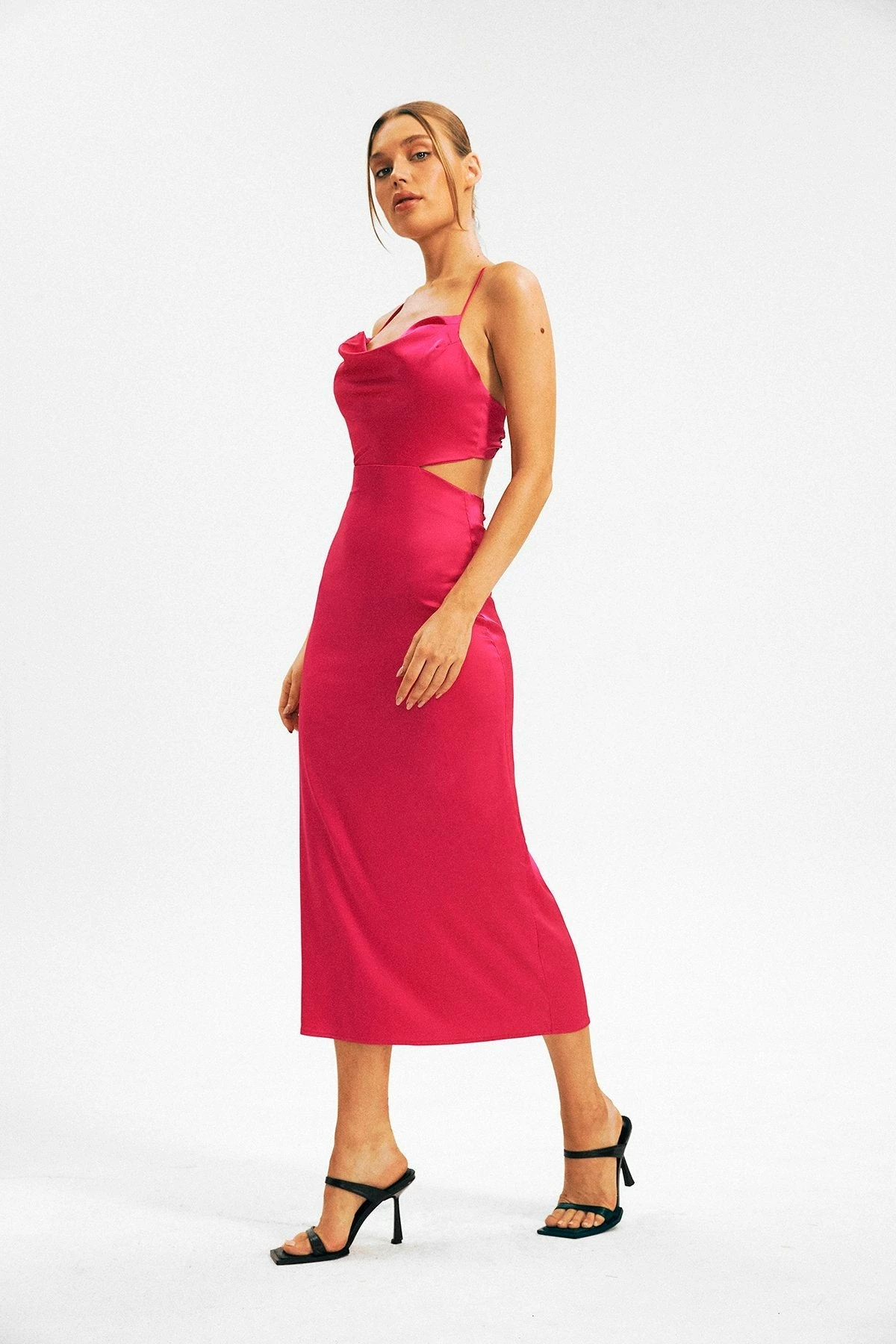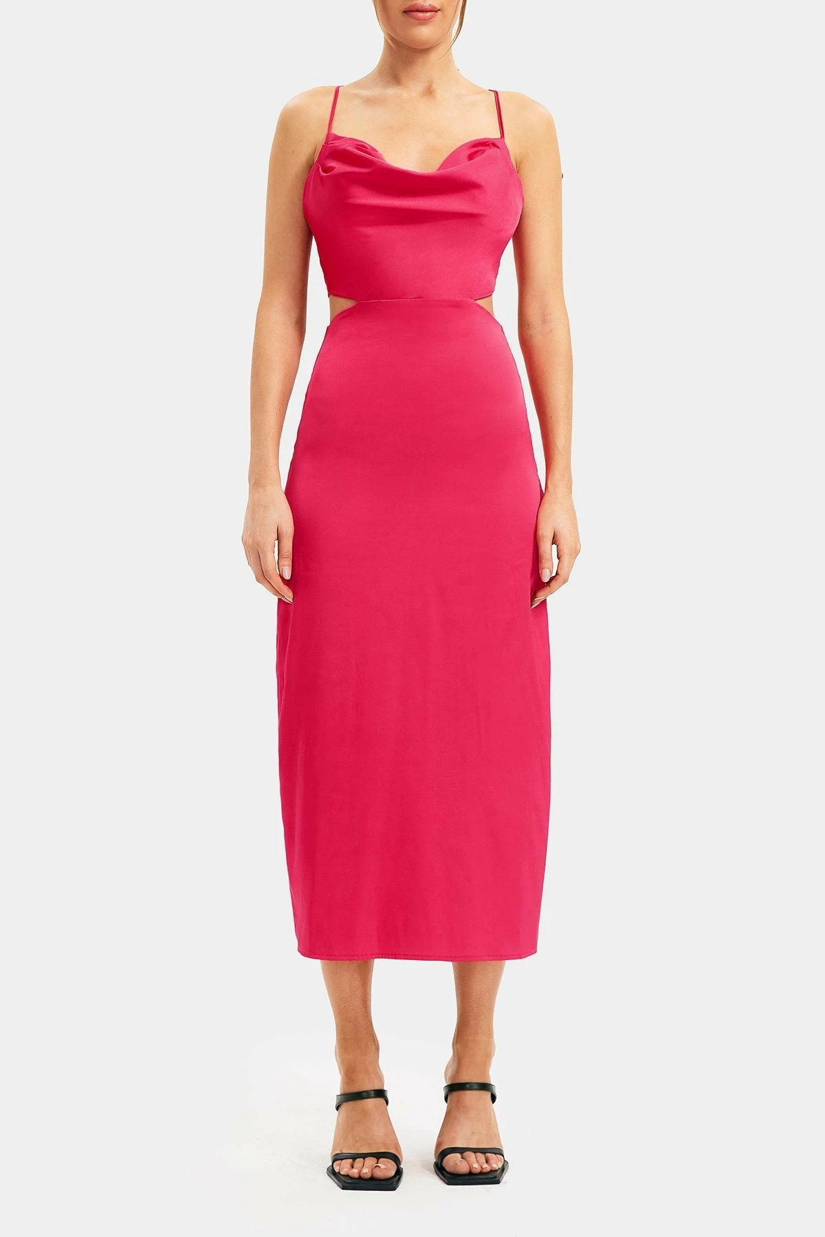 Solado Satin Cowl Neck Tie Backless Solid Maxi Dress