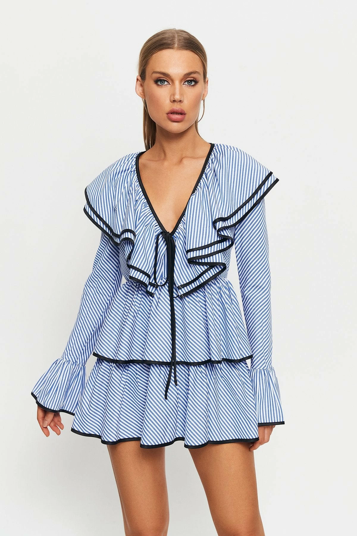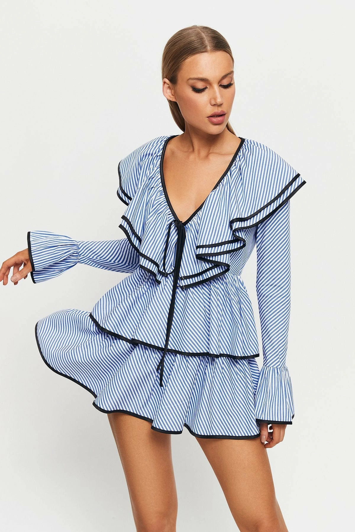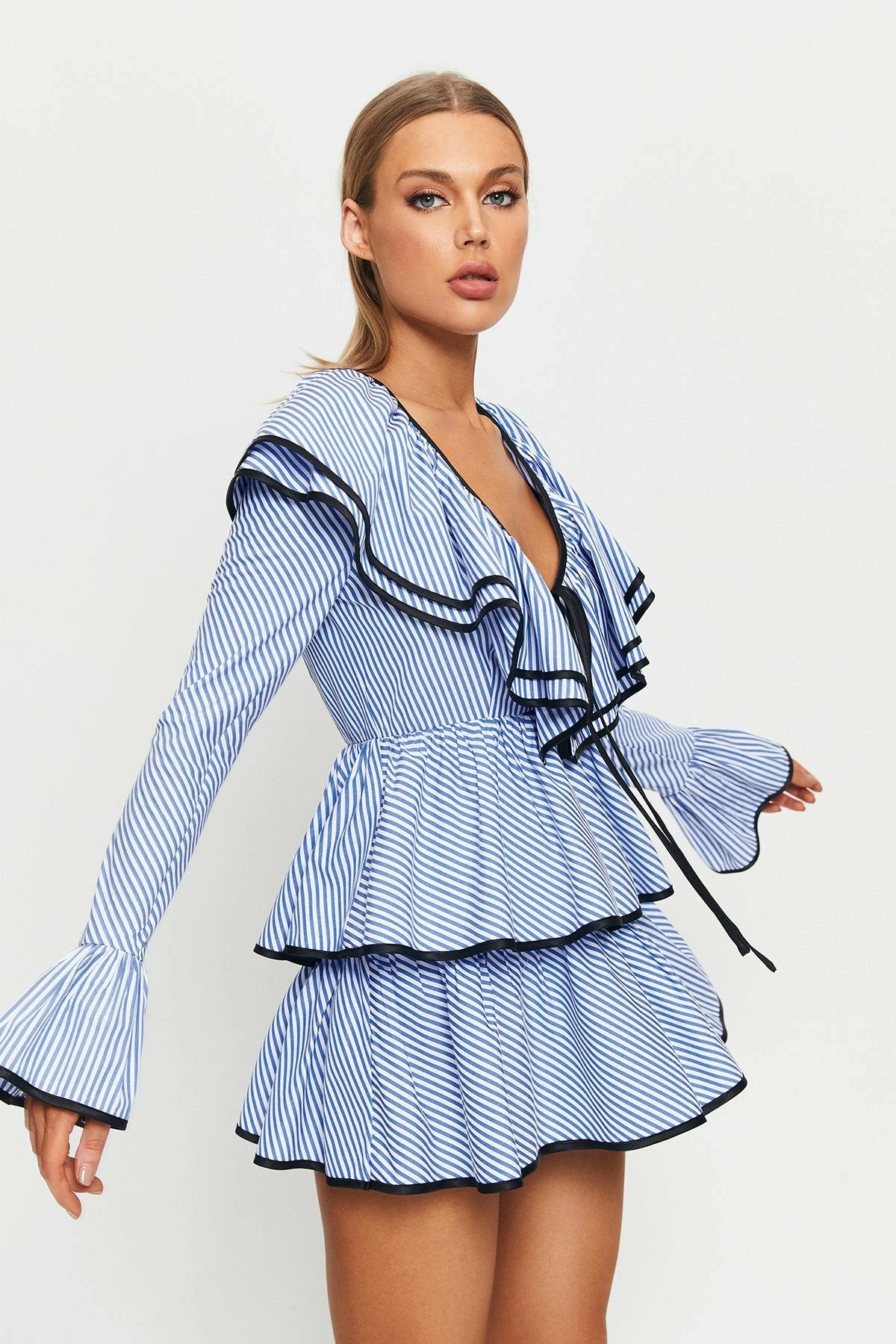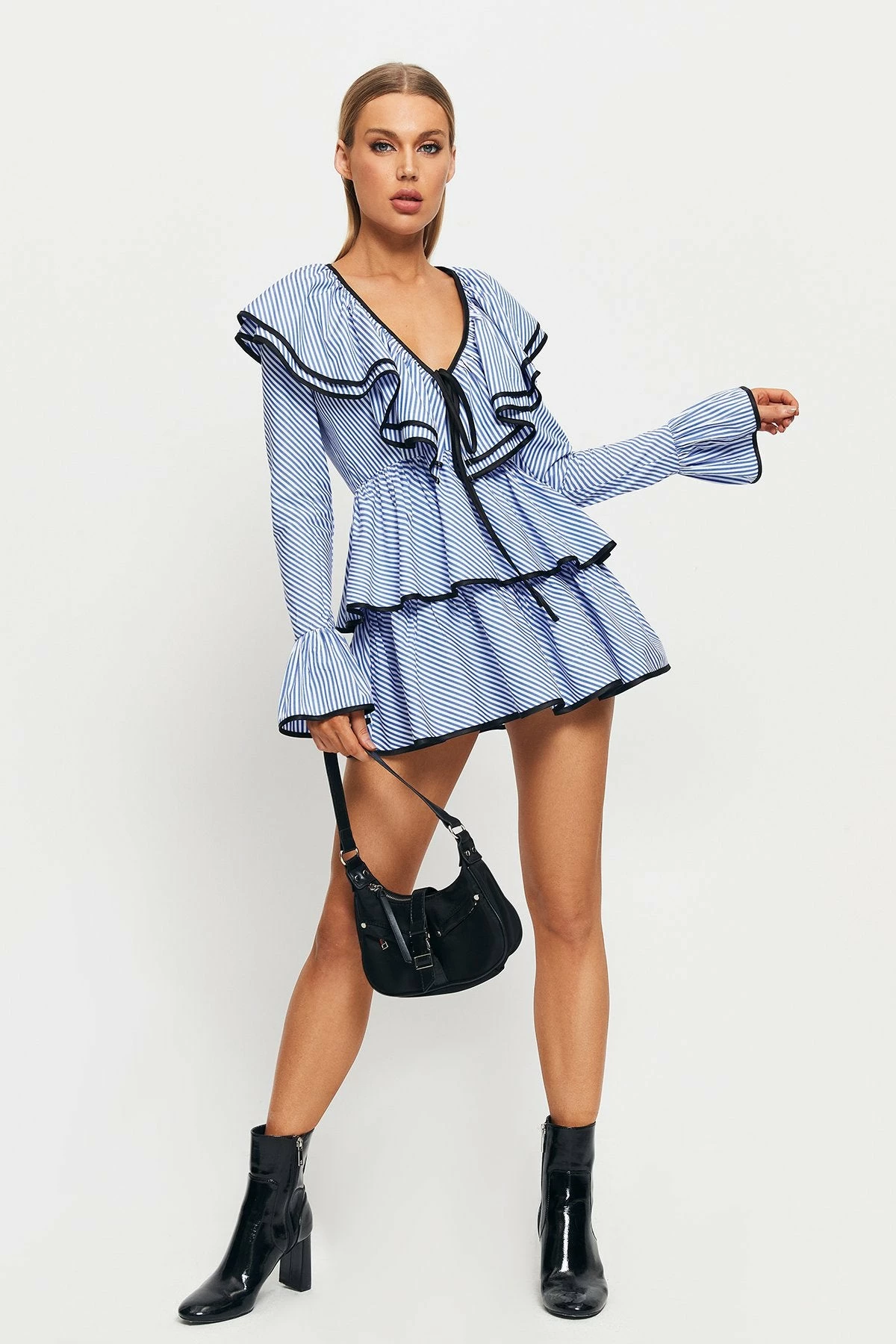 Be the first to review “SOLADO Striped Print Colorblock Trim Ruffle Layered Mini Dress” Cancel reply