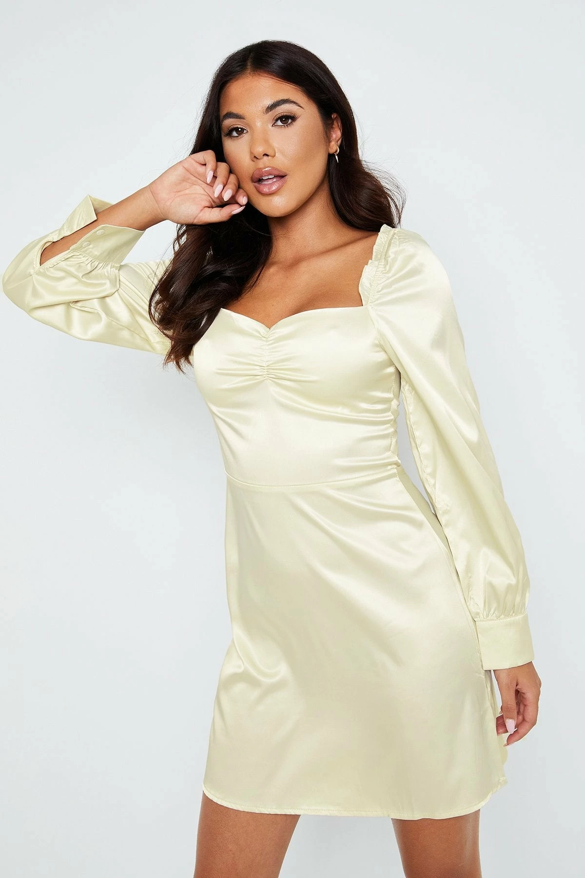 Be the first to review “Solado Sweetheart Puff Sleeve Ruched Solid Mini Dress” Cancel reply