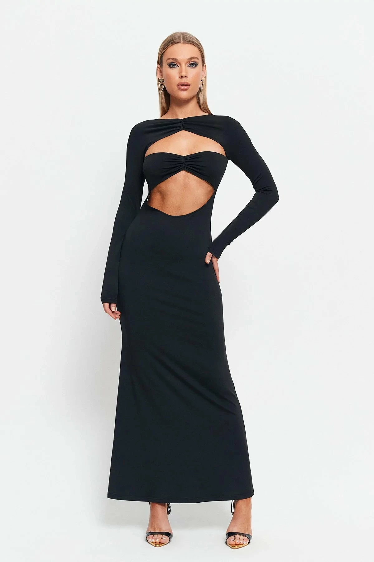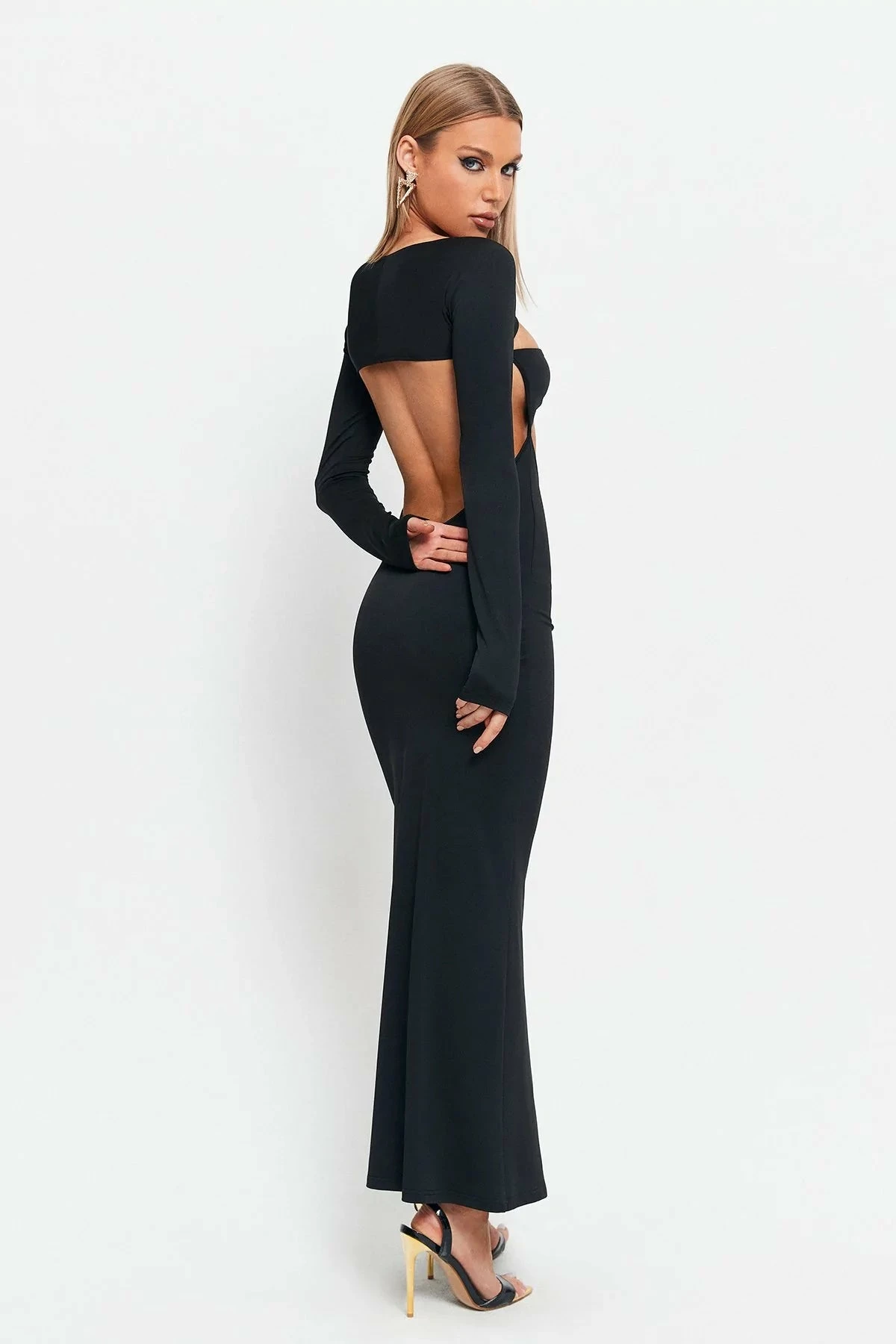 SOLADO Twist Front Cut Out Open Back Mermaid Maxi Dress