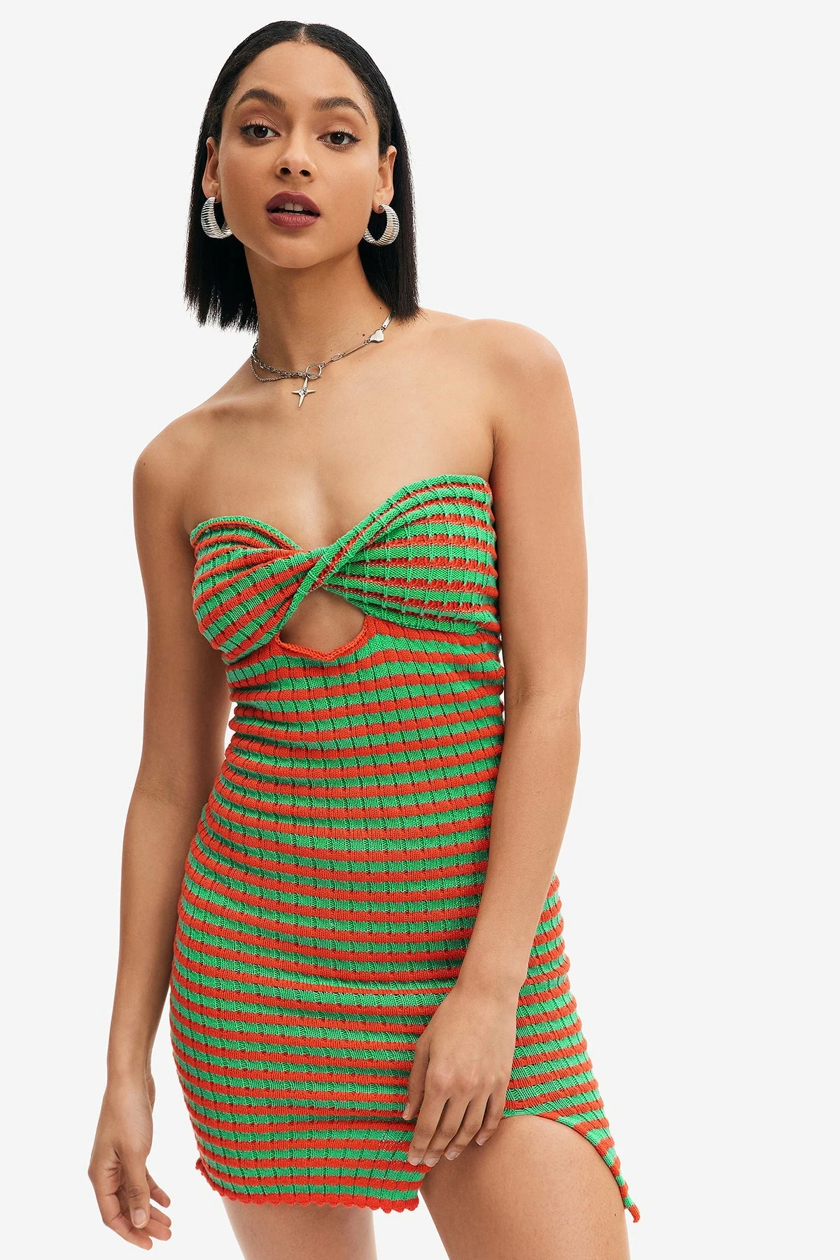 Be the first to review “Solado Twist Front Split Hem Two Tone Knitted Mini Dress” Cancel reply