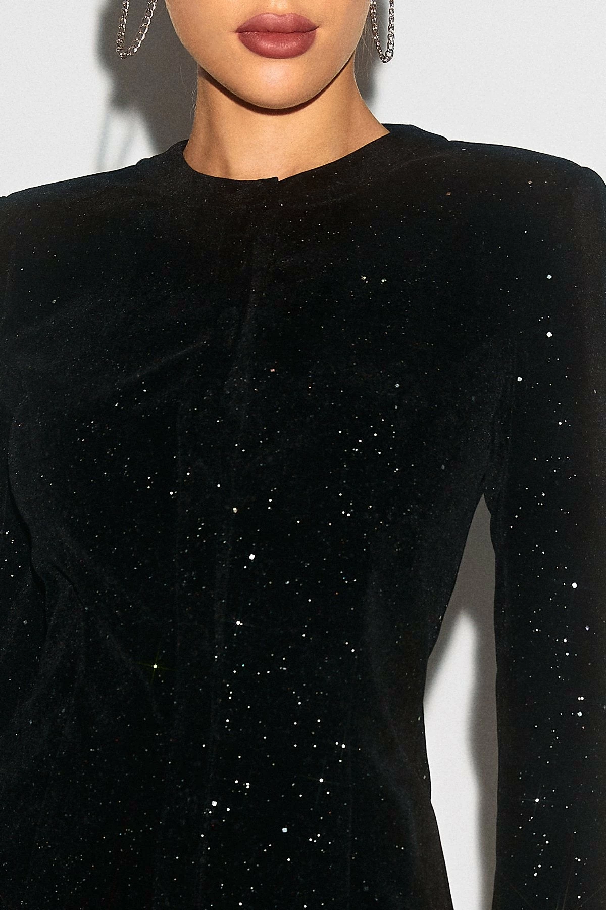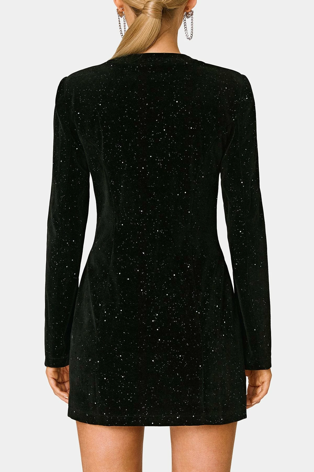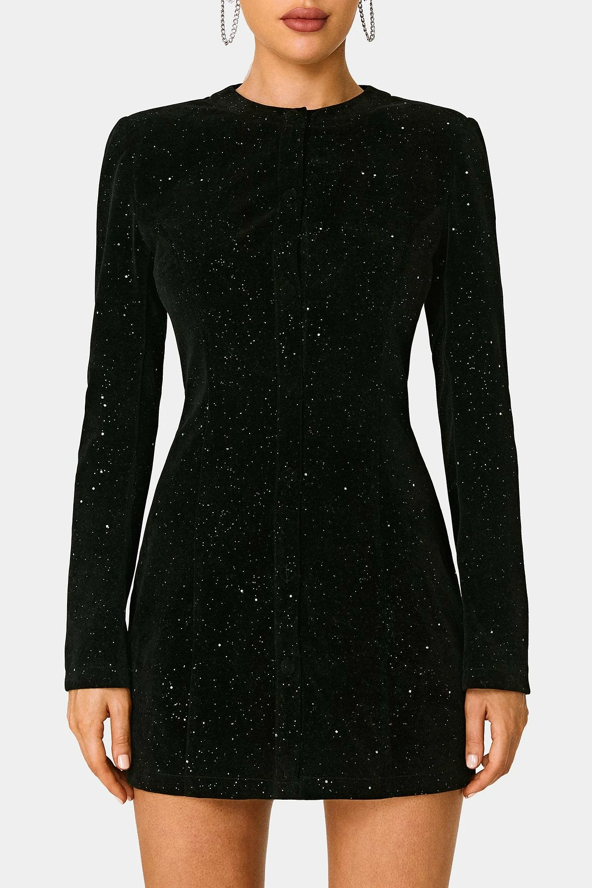 SOLADO Velvet Glitter Shoulder Pad Long Sleeve Mini Dress